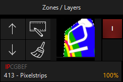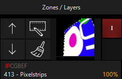 In this case, I applied the transformation on the Master Zone fixture, but these parameters are also available on the Source, Effect 1, and Effect 2 slots. The white dashed line around the canvas indicates the size of the canvas, which is very useful when using transparent or black backgrounds.