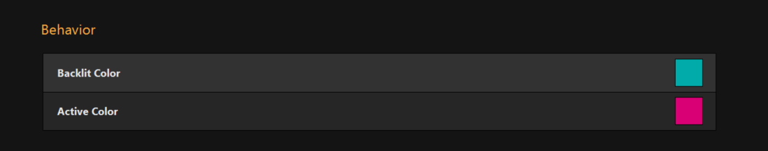 Sets the active color of all buttons, LED's, and encoders' backlight Example: When the programmer contains values, the clear button is in an active state to indicate that a CLEAR operation is available. |